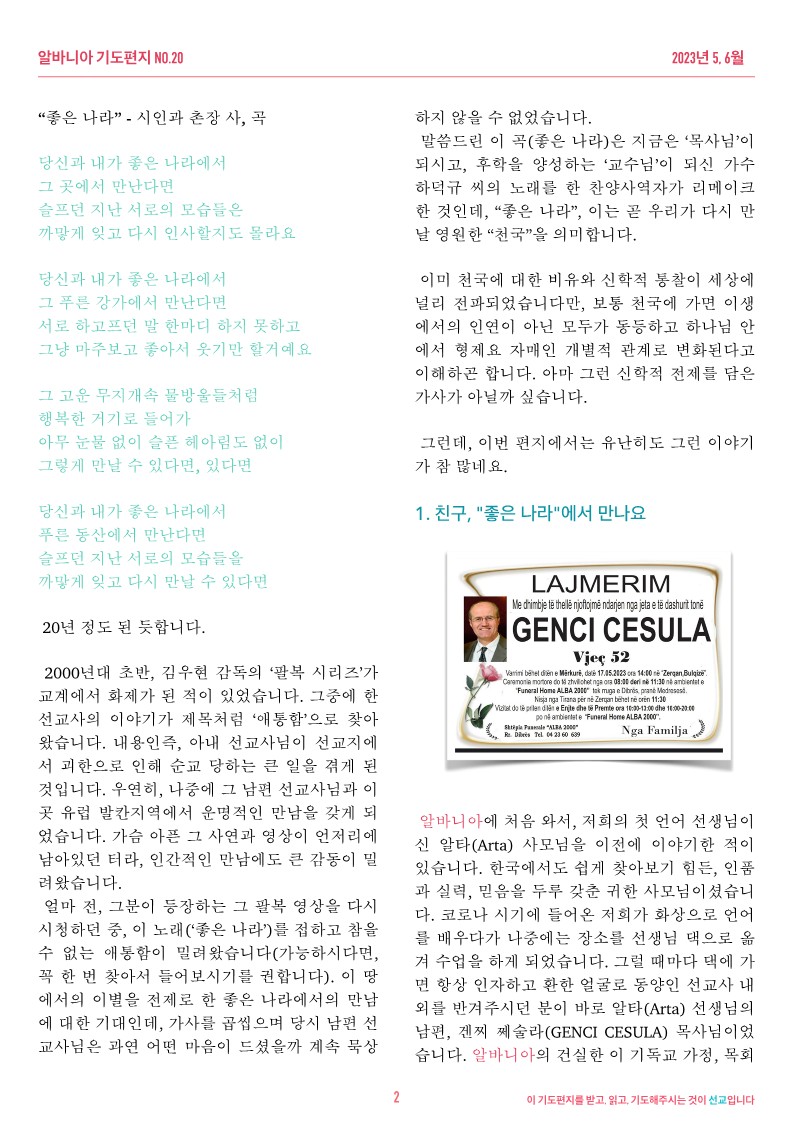 [알바니아] 5~6월 기도편지